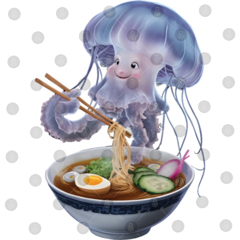 Jellyfish Eating Ramen Realistic Digital Files
