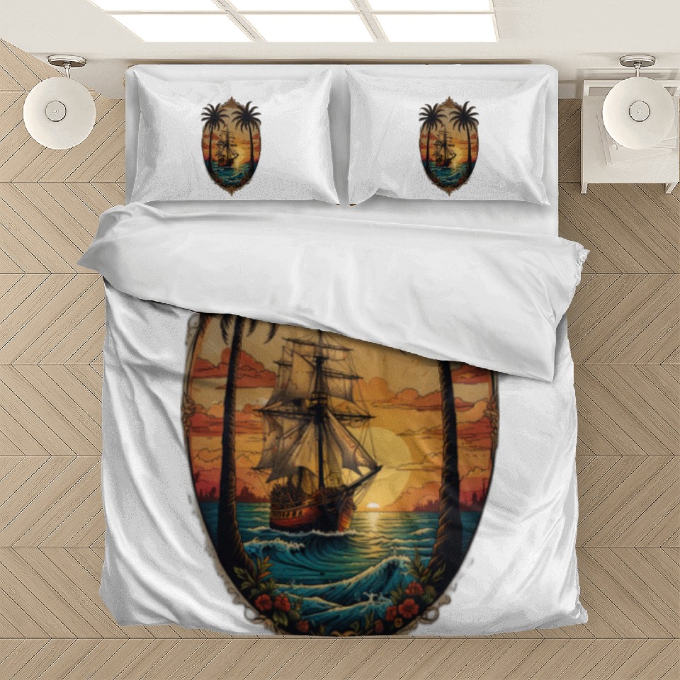 Own fascinating Jerry & Ed Hardyy Inspired Tropical Tattoo Design Bedding Sets or see more Bedding Sets products now from Printblur shop to enjoy your shopping time!