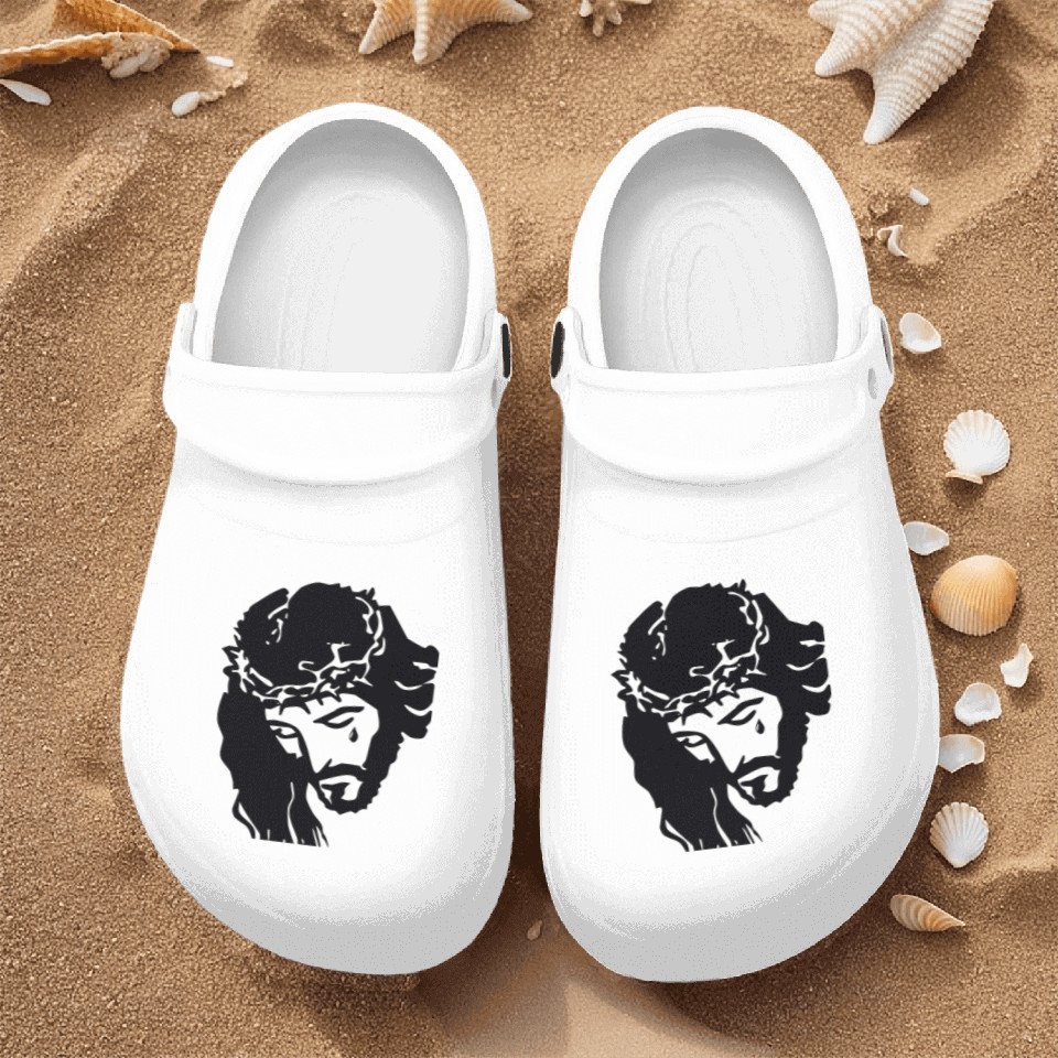You are viewing one of the trendiest products JESUS CROWN OF THORNS Nurse Clogs For Men WHITE belong theme Nurse Clogs at Printblur