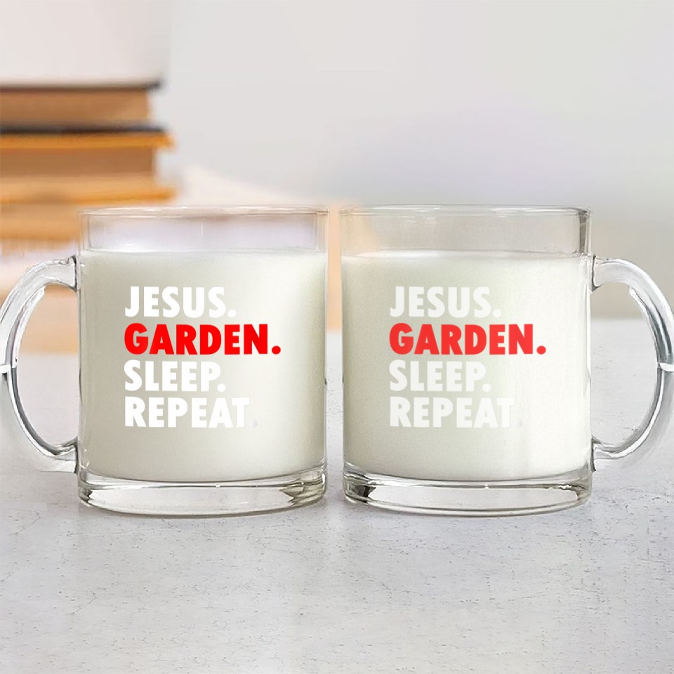 Buy eye-catching Jesus Garden Sleep Repeat - Novelty Hobby Glass Mugs or see more Glass Mugs products at Printblur shop now to explore many surprises from our shop!