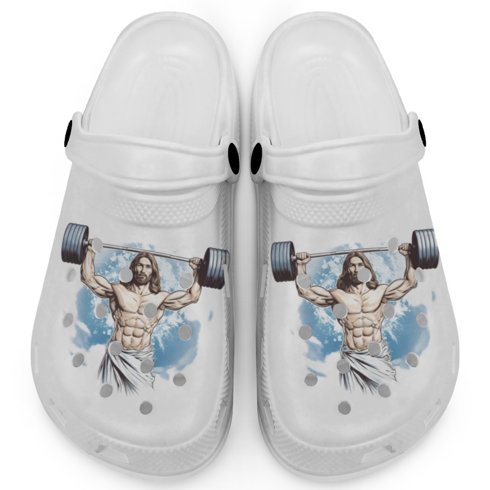 Shop for impressive Jesus The Ultimate Deadlifted Retro Jesus Clogs or see more Clogs products right now on Printblur to enjoy your happiness!