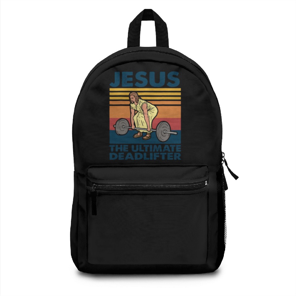 The product unique design you searched for is Jesus The Ultimate Deadlifter Gym Christian Backpacks For Black belong theme Backpacks at Printblur