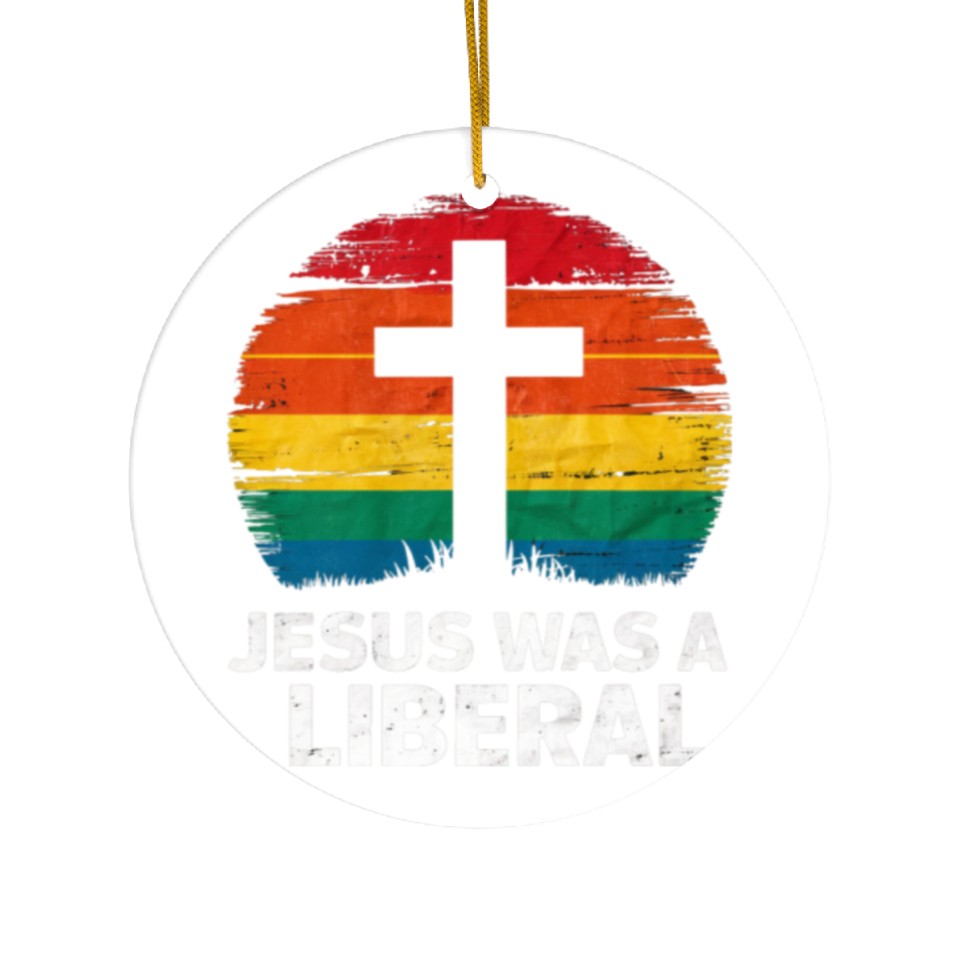 You are seeing a unique and impressive product Jesus Was A Liberal Retro Sunset Progressive Ceramic Ornaments For WHITE belong theme Ceramic Ornaments at Printblur
