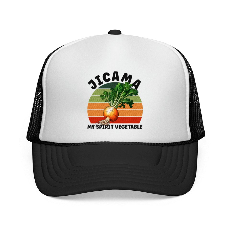 You are shopping for a stunning and trendy product Jicama Spirit Vegetable Vegetarian Food Lover Trucker Caps For Unisex Black belong theme Trucker Caps at Printblur