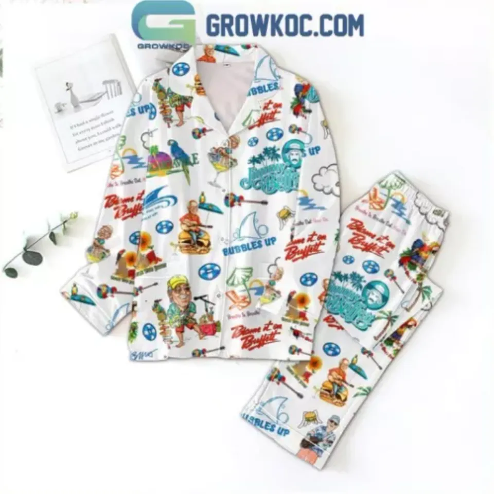 Shop for impressive Jimmy Buffett Blame It On Buffett Holiday Polyester Pajamas Set or see more Adult Pajamas Sets products right now on Printblur to enjoy your happiness!