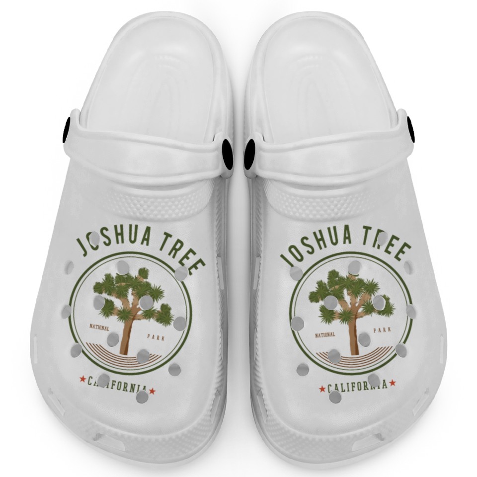 The product unique design you searched for is Joshua Tree National Park Clogs California Trees For Kids WHITE belong theme Clogs at Printblur