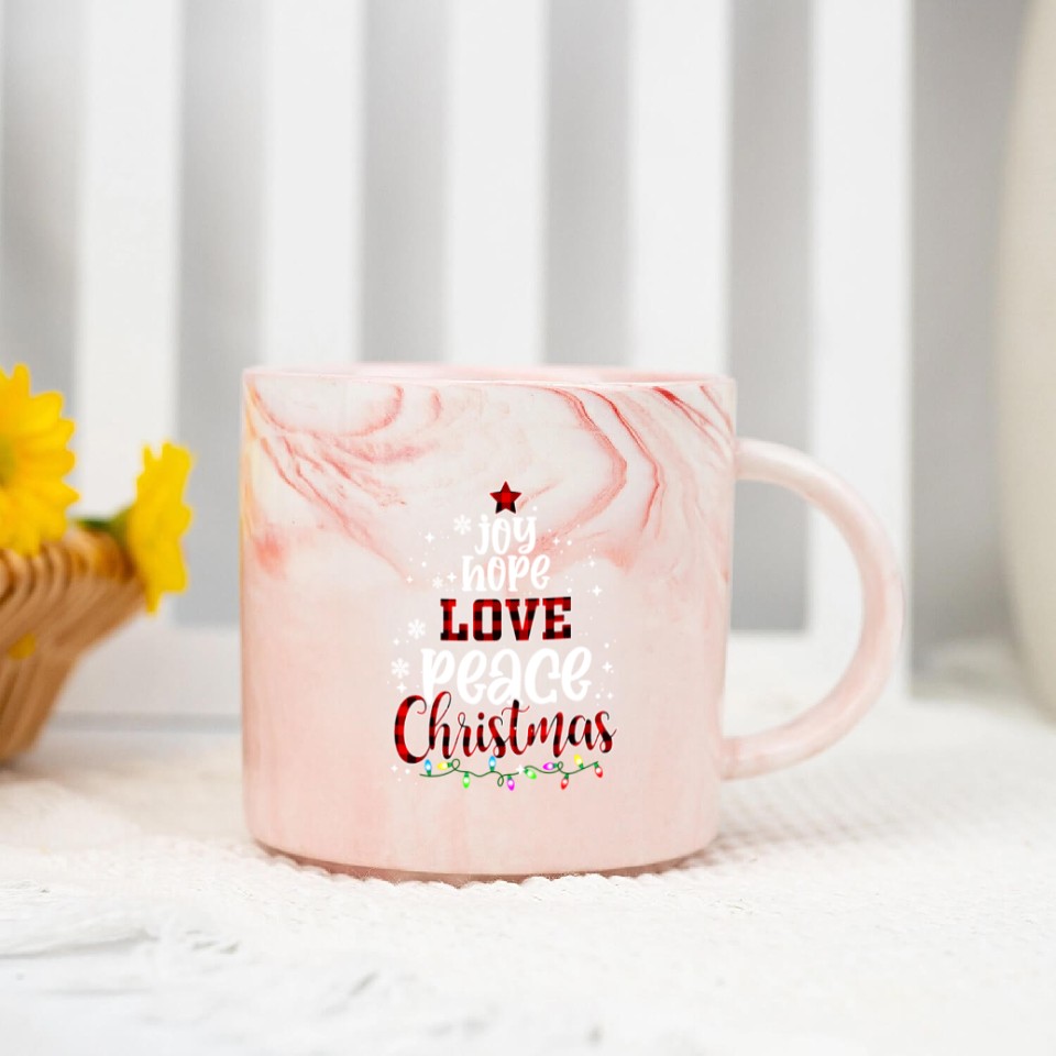 You are shopping for a stunning and trendy product Joy Hope Love Peace Christmas Red Buffalo Plaid Marble Mugs For Pink belong theme Marble Mugs at Printblur