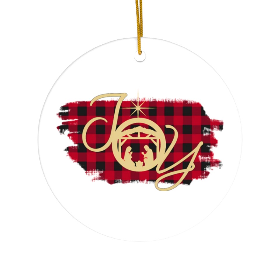 You're looking at the eye-catching product Joy In A Ger Nativity Jesus Birth Buffalo Plaid Ceramic Ornaments For WHITE belong theme Ceramic Ornaments at Printblur