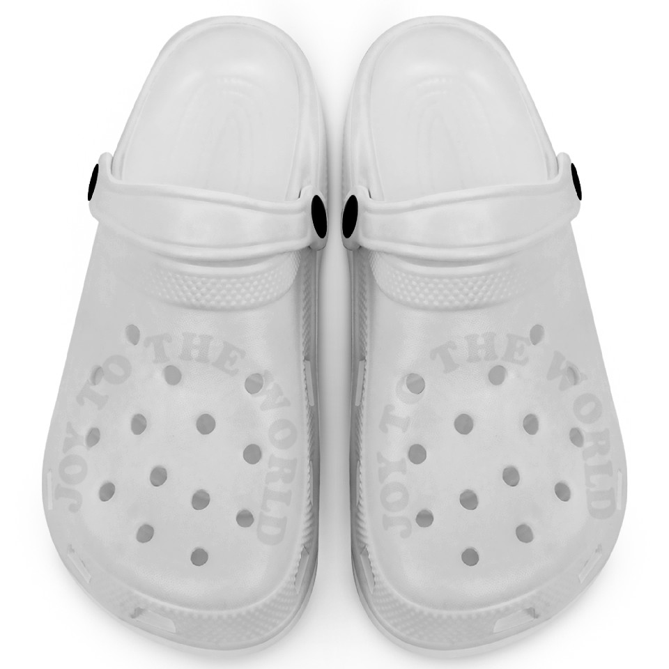 You are viewing an exclusive and elegant product Joy To The World Merry Christmas Holiday Xmas Clogs For Kids WHITE belong theme Clogs at Printblur