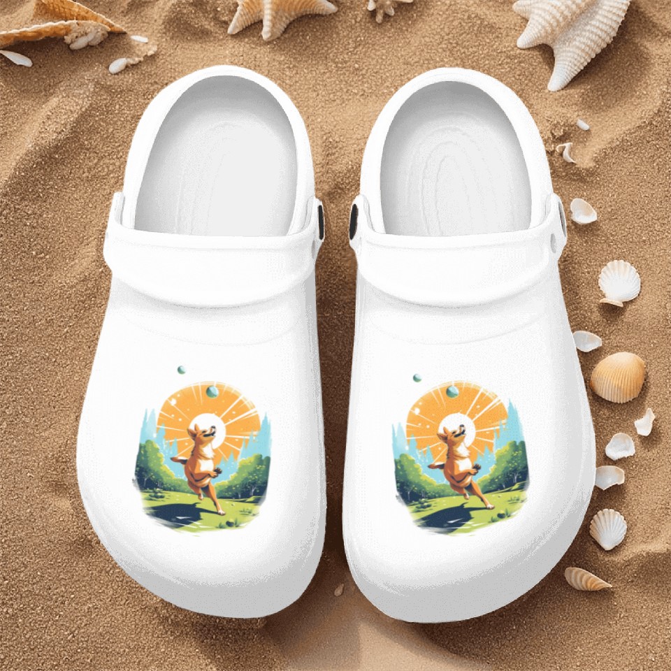 You are seeing a unique and impressive product Joyful Dog in Summer Park Nurse Clogs For Men WHITE belong theme Nurse Clogs at Printblur