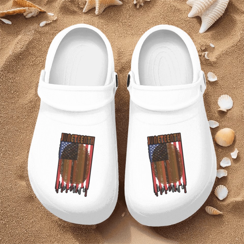 You are viewing one of the trendiest products Juneteenth US Flag African American Graphic Nurse Clogs For Men WHITE belong theme Nurse Clogs at Printblur