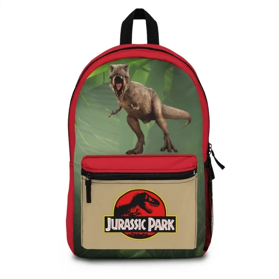 The product unique design you searched for is Jurassic Park T-Rex Backpack, Dinosaur Bag, T Rex Backpack, Jurassic Park Bag, For belong theme Backpacks at Printblur