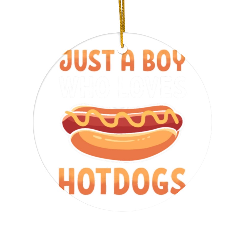 The item hot trend you're looking at is Just a Boy Who Loves Hotdogs Ceramic Ornaments For WHITE belong theme Ceramic Ornaments at Printblur