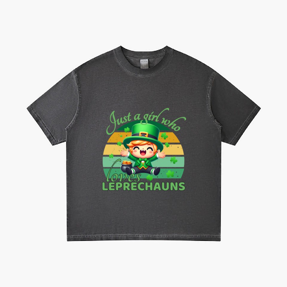 You're looking at the eye-catching product Just A Girl Who Loves Leprechauns Gradient T Shirts For Men Washed Black belong theme Gradient T-Shirts at Printblur