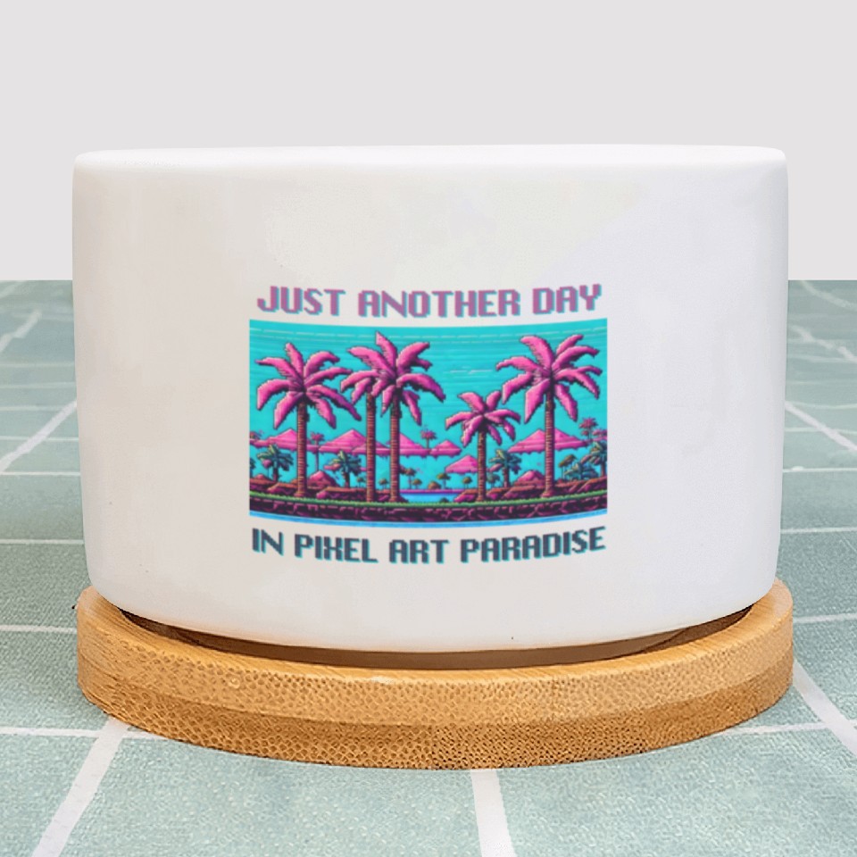 You are viewing an exclusive and elegant product Just Another Day In Pixel Art Paradise Plant Pots For WHITE belong theme Plant Pots at Printblur