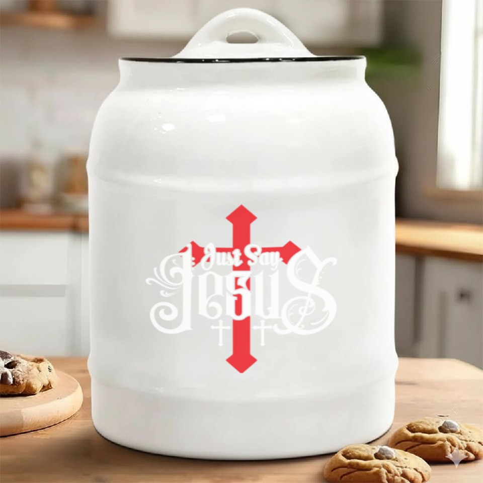 The item hot trend you're looking at is Just Say Jesus Love Jesus Christian Christmas Ceramic Cookie Jars For belong theme Ceramic Cookie Jars at Printblur