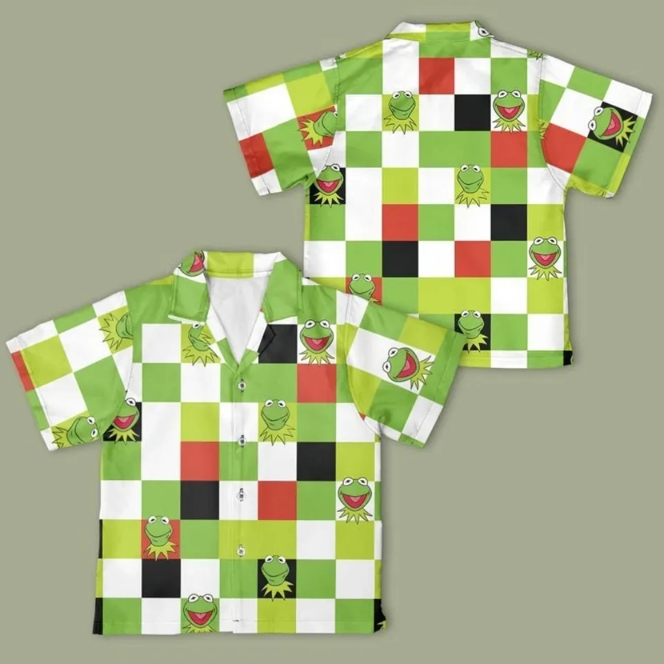 The item hot trend you're looking at is K the frog Checkerboard Hawaiian Shirt, The Muppet Show Button Down Shirt For Kids belong theme Hawaiians at Printblur