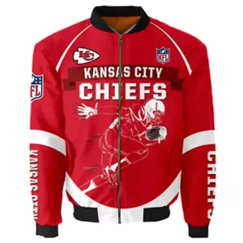 Own fascinating Kansas City Chiefs bomber Jacket running player Casual Jacket or see more Men's Bomber Jackets products now from Printblur shop to enjoy your shopping time!