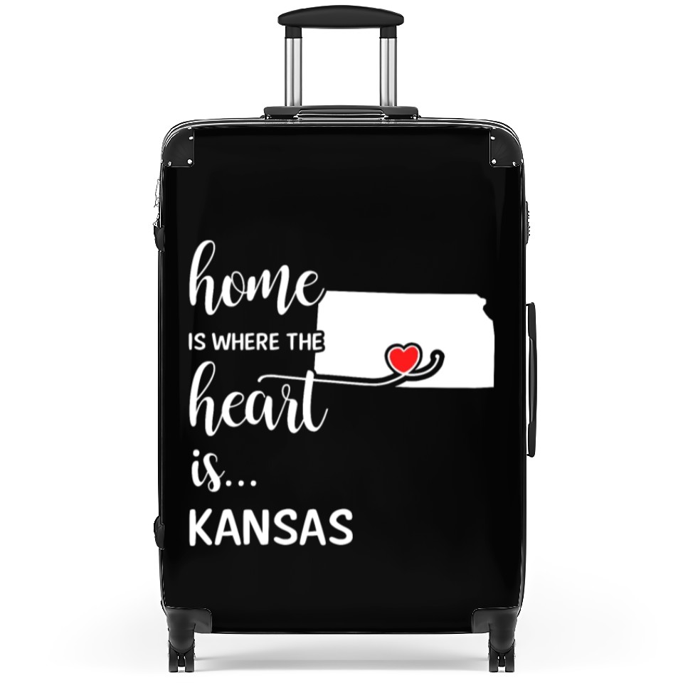 The product unique design you searched for is Kansas Home Is Where Heart Is Cool Gift Suitcases For Black belong theme Suitcases at Printblur