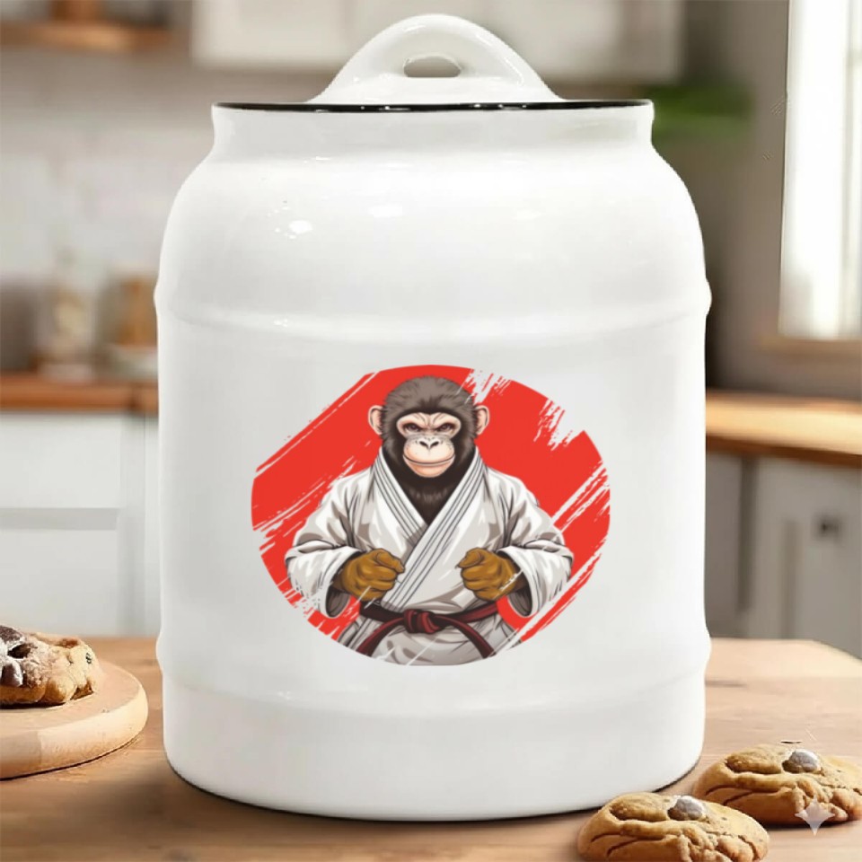The product unique design you searched for is Karate Judo Monkey Chimpanzee Martial arts Ceramic Cookie Jars For belong theme Ceramic Cookie Jars at Printblur