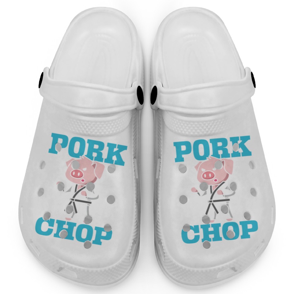 You're taking a peek at the product Karate Pig Pork Chop Taekwondo Judo MMA Martial Clogs For Kids WHITE belong theme Clogs at Printblur
