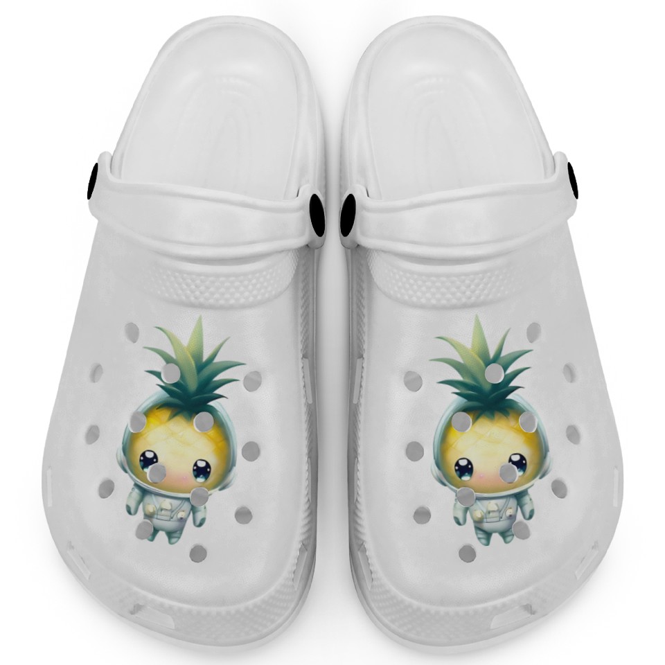 The item hot trend you're looking at is Kawaii astronauts pineapple Clogs For Kids WHITE belong theme Clogs at Printblur