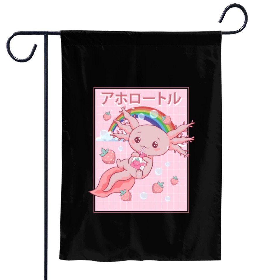 Shop for impressive Kawaii Axolotl Strawberry Milk Garden Flags or see more Garden Flags products right now on Printblur to enjoy your happiness!