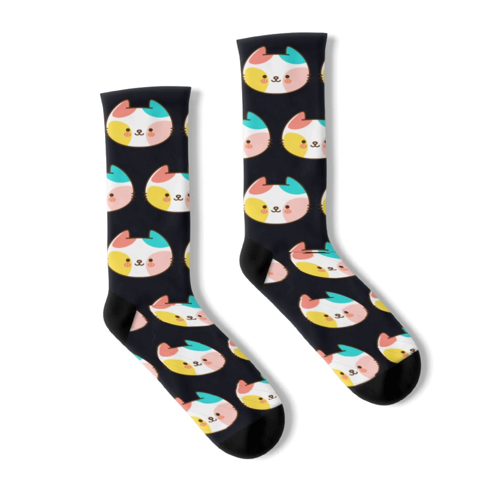 The product unique design you searched for is Kawaii Cat Head Multicolored Socks For Black belong theme Socks at Printblur