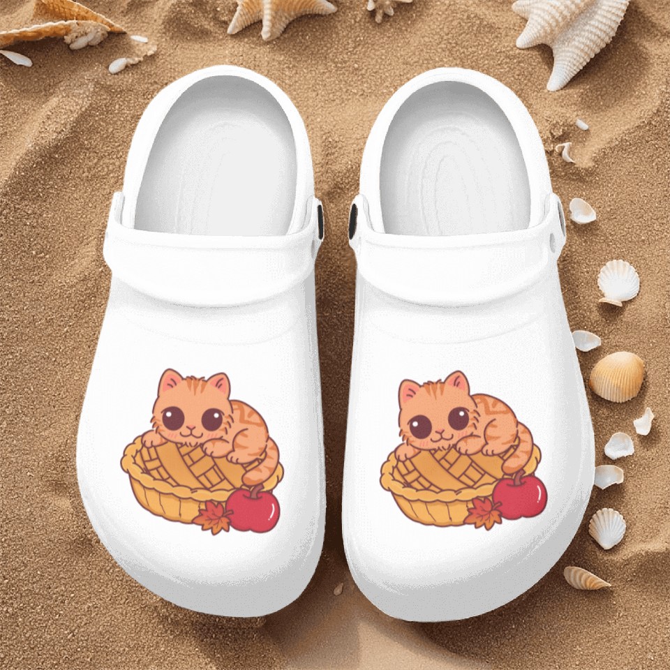 You are viewing an exclusive and elegant product Kawaii Cat on Autumn Apple Pie Nurse Clogs For Men WHITE belong theme Nurse Clogs at Printblur