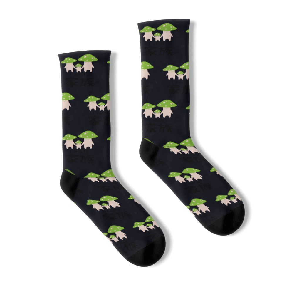 You are viewing an exclusive and elegant product Kawaii Mushroom Family Green Socks For Black belong theme Socks at Printblur