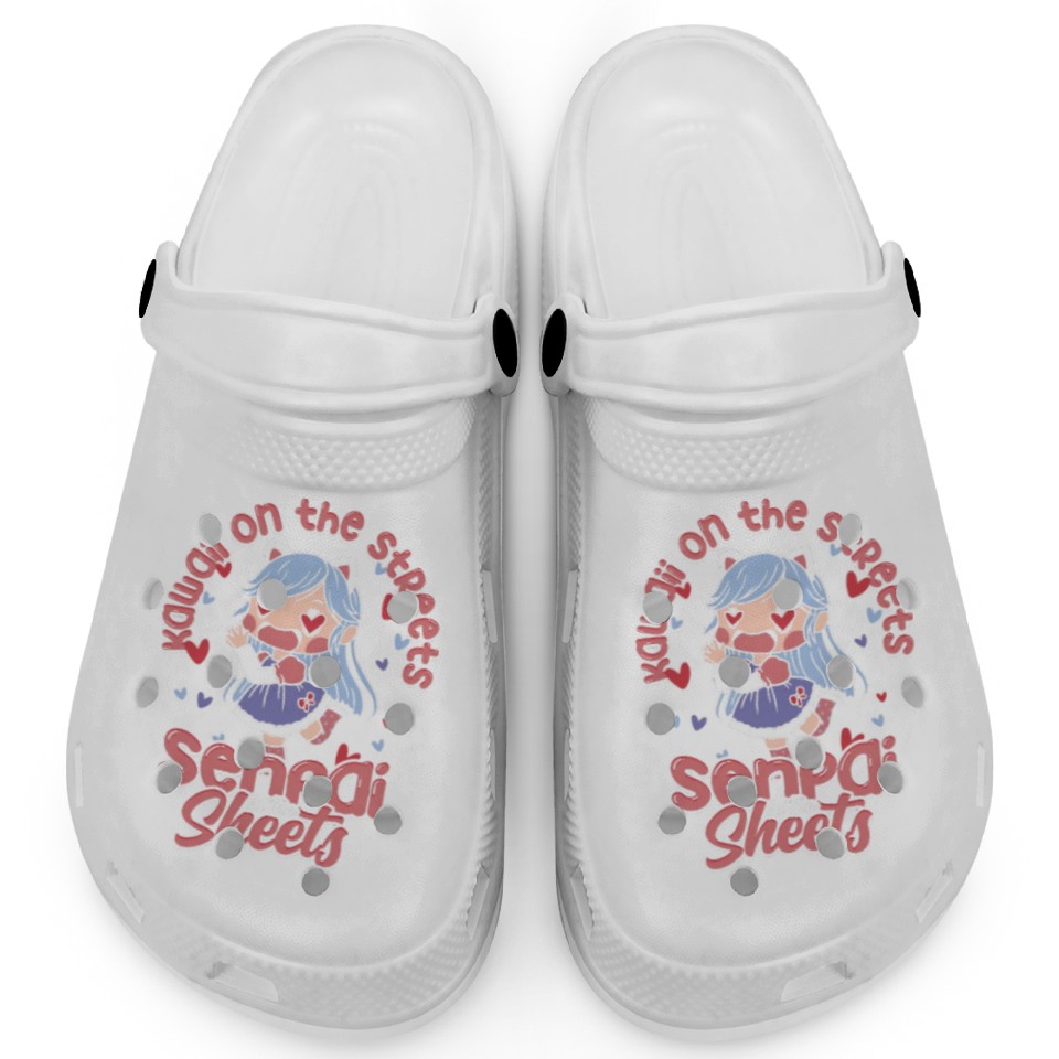 You're searching for a one-of-a-kind product Kawaii on the streets, senpai in the sheets - Clogs For Kids WHITE belong theme Clogs at Printblur