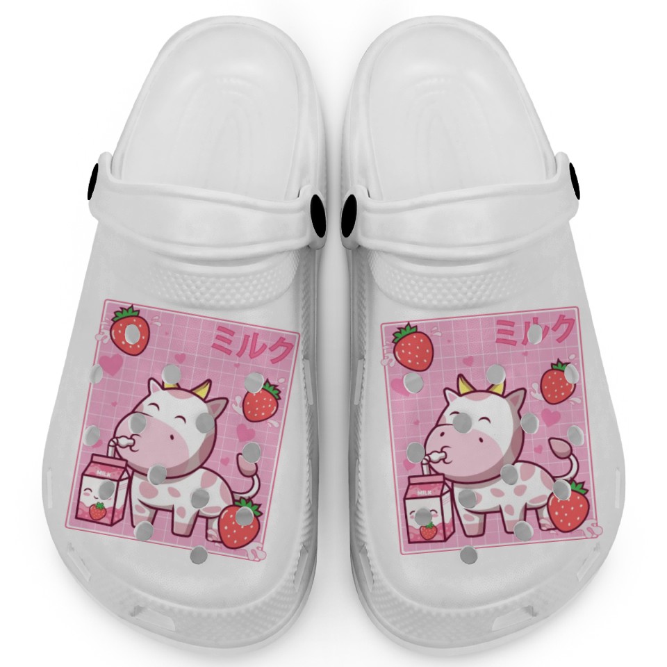 Shop for impressive Kawaii Pink Strawberry Cow Milk Shake Otaku Anime Clogs or see more Clogs products right now on Printblur to enjoy your happiness!