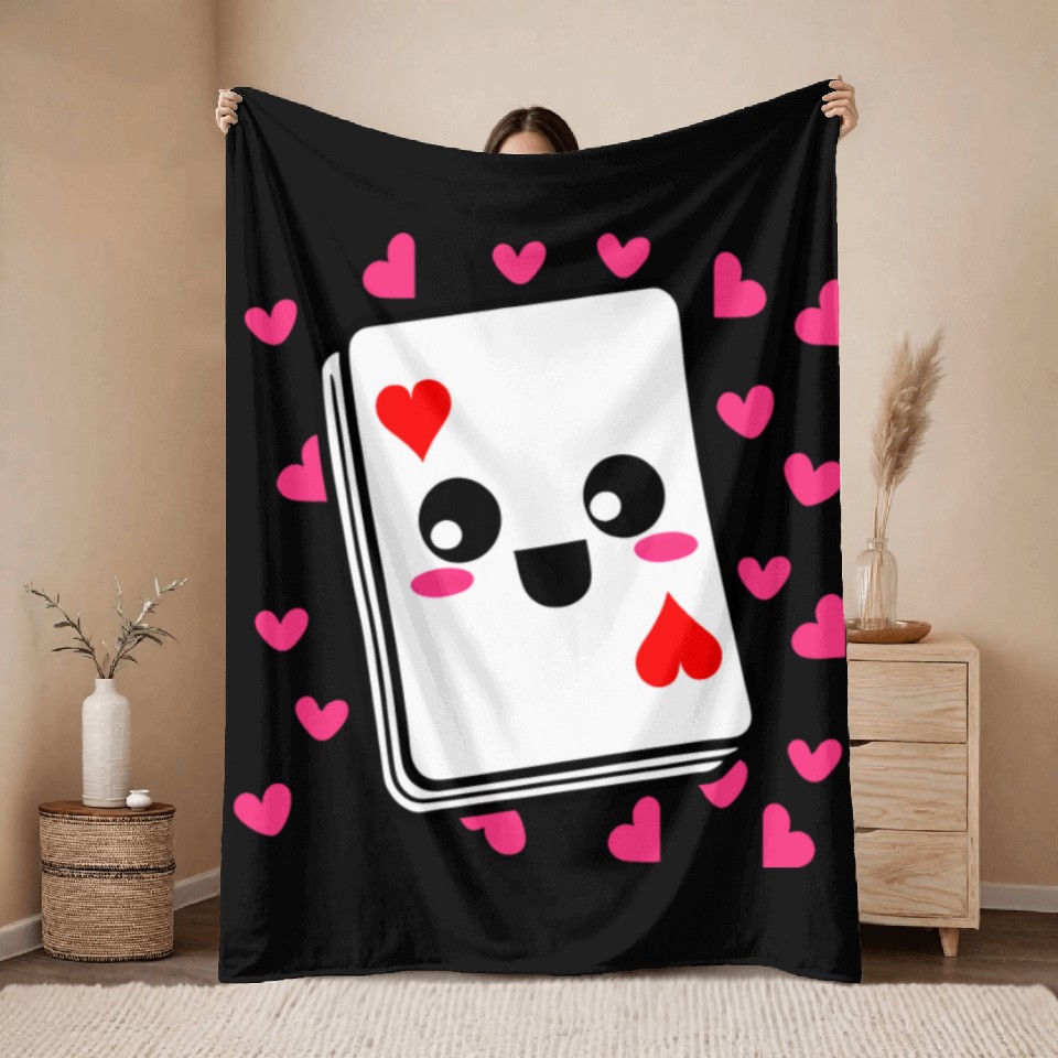 Buy eye-catching Kawaii Playing Card Hearts Throw Blankets or see more Throw Blankets products at Printblur shop now to explore many surprises from our shop!