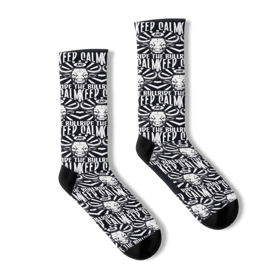 You are viewing an exclusive and elegant product Keep Calm Ride the Bull Illustration Socks For Black belong theme Socks at Printblur
