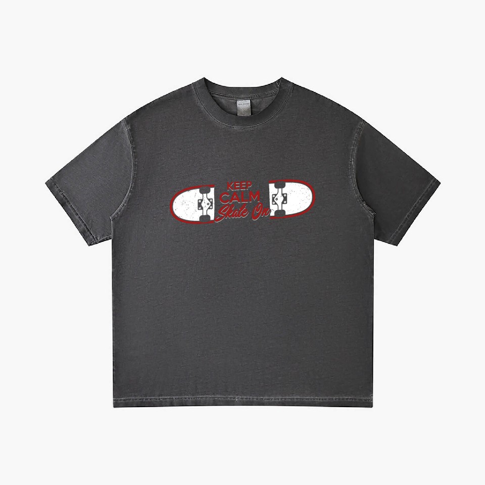 The product unique design you searched for is Keep Calm Skate On Skateboard Skater Skateboarding Gradient T Shirts For Men Washed Black belong theme Gradient T-Shirts at Printblur