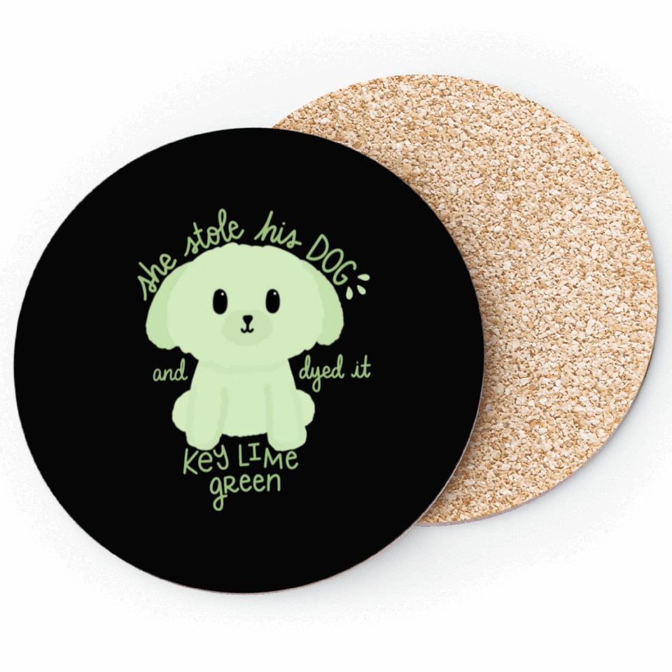 You're searching for a one-of-a-kind product Key Lime Green Dog Coasters For Black belong theme Coasters at Printblur