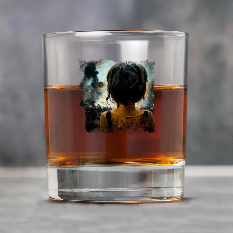 Kid in war looking at explosion 2 AI painting Rock Glasses