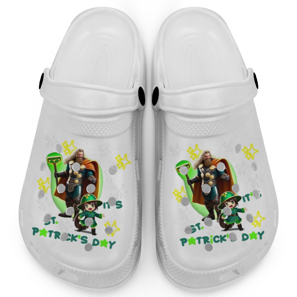 You're searching for a one-of-a-kind product Kids St. Patrick's Day Shamrock "Thor, anime" Clogs For Kids WHITE belong theme Clogs at Printblur