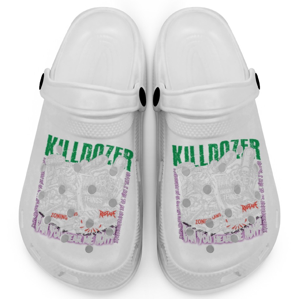 You're taking a peek at the product Killdozer, Marvin Heemeyer, Be Unreasonable Clogs For Kids WHITE belong theme Clogs at Printblur