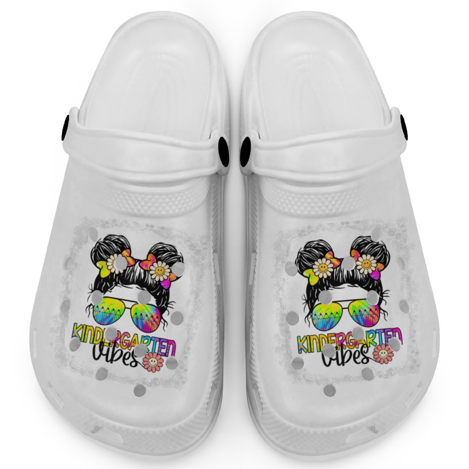 Buy eye-catching Kindergarten Vibes Bleached Messy Bun Girl Clogs or see more Clogs products at Printblur shop now to explore many surprises from our shop!