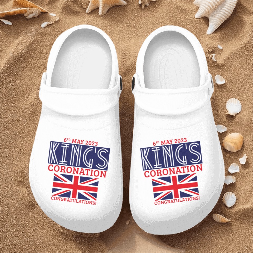 You are viewing an exclusive and elegant product King’s Coronation, 6th May 2023 Congratulations, N Nurse Clogs For Men WHITE belong theme Nurse Clogs at Printblur