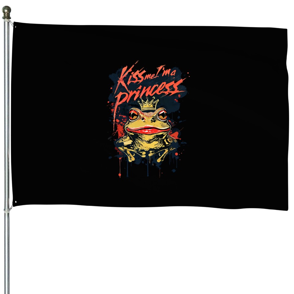 Shop for attractive Kiss Me I'm A Princess Funny Frog Toad House Flags or see more House Flags products on https://printblur.com right now!