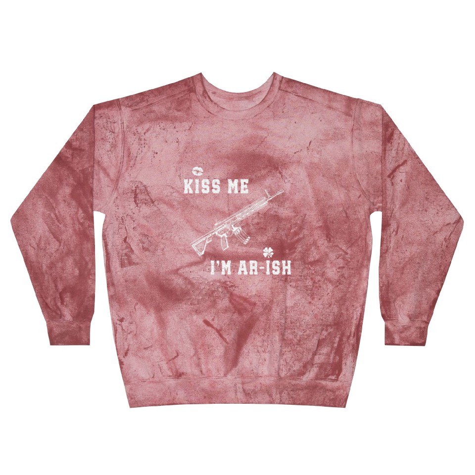 The item hot trend you're looking at is Kiss Me I'm AR ish St Patricks Day Irish Gun Men Blast Sweatshirts For Unisex Clay belong theme Blast Sweatshirts at Printblur