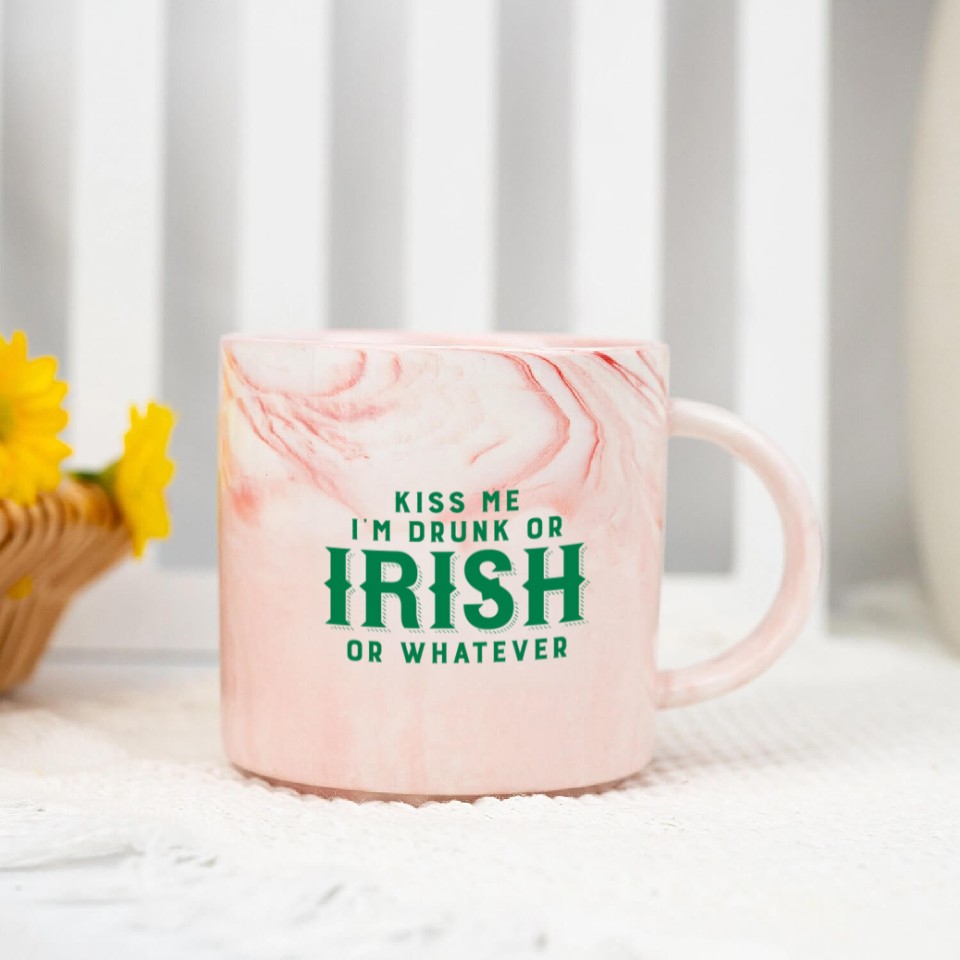 You are shopping for a stunning and trendy product Kiss Me I'm Drunk or Irish or Whatever Marble Mugs For Pink belong theme Marble Mugs at Printblur