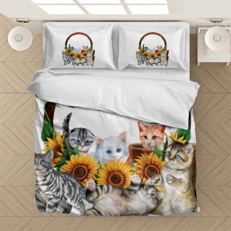 You are seeing a unique and impressive product Kittens Sunflowers Gift For Cat LOver Bedding Sets For WHITE belong theme Bedding Sets at Printblur