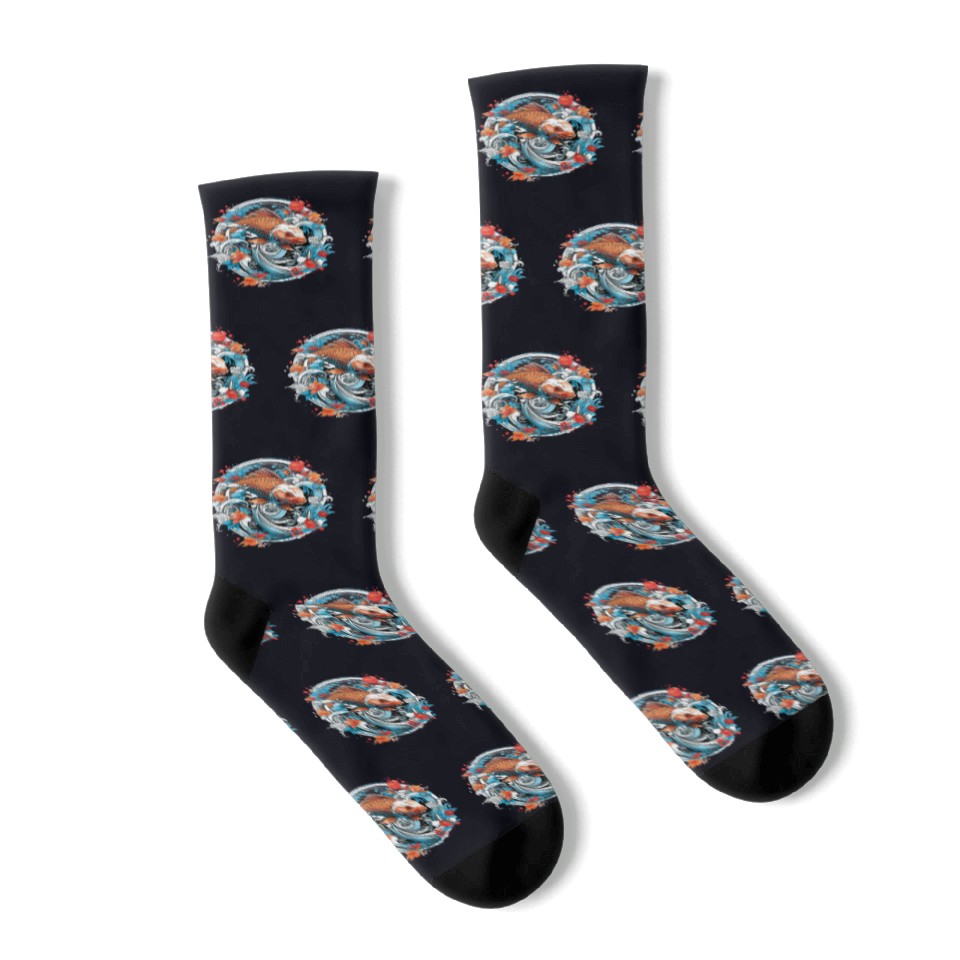 You're searching for a one-of-a-kind product Koi Fish Koi Carp Japanese Koi Garden-Pond Koi Socks For Black belong theme Socks at Printblur