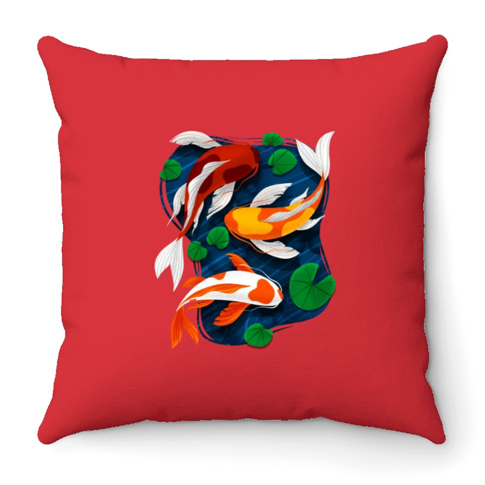 You're searching for a one-of-a-kind product Koi Fish Lover Water Pond Animal Pet Asian Throw Pillows For Cover Only Red belong theme Throw Pillows at Printblur