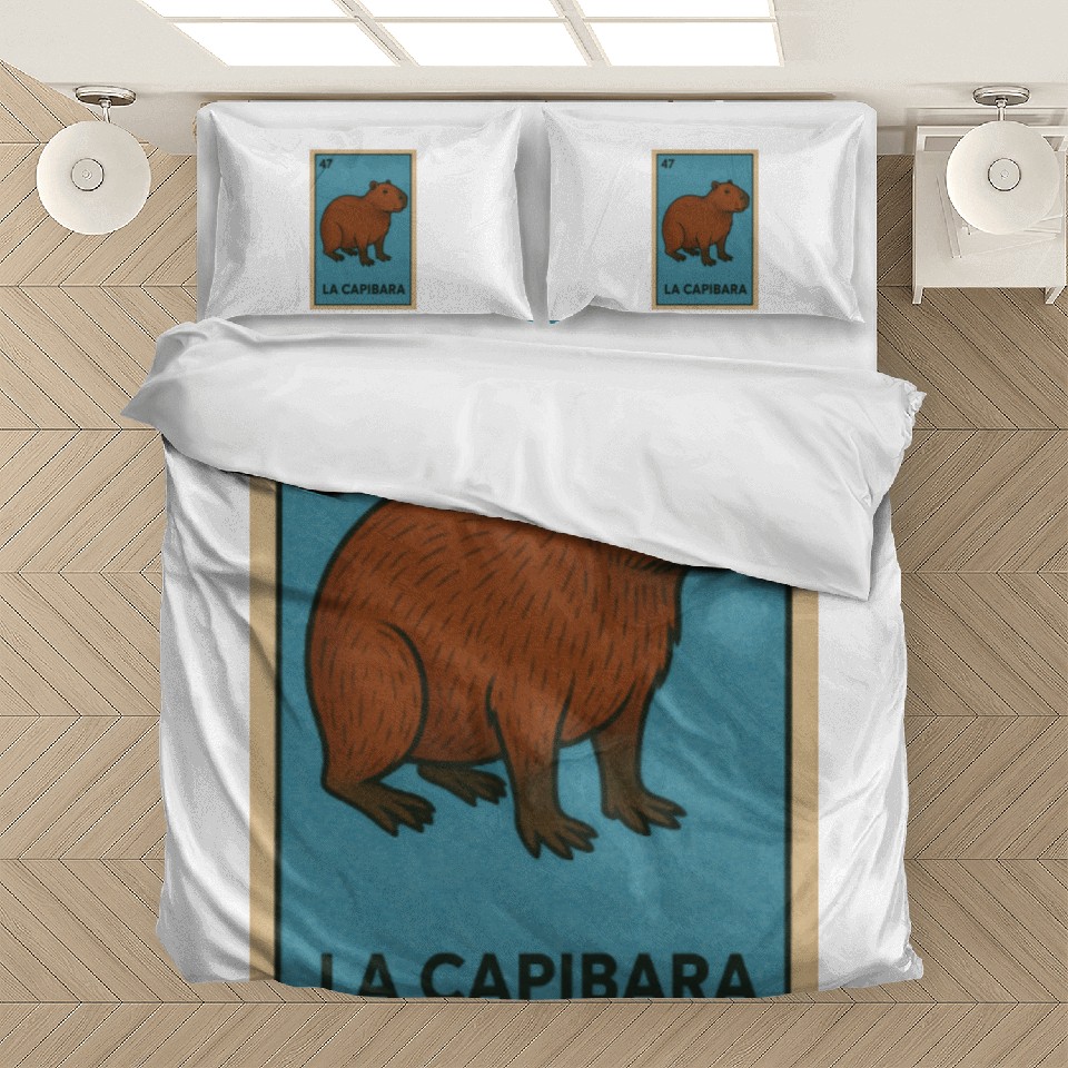 You are viewing an exclusive and elegant product LA CAPIBARA - THE CAPYBARA - LOTERÍA CARD Bedding Sets For WHITE belong theme Bedding Sets at Printblur