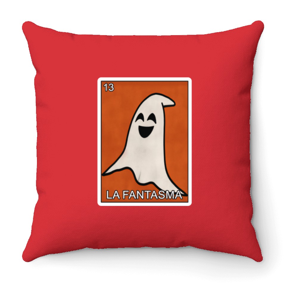You are seeing a unique and impressive product La Fantasma Ghost Card Mexican Lottery Card Throw Pillows For Cover Only Red belong theme Throw Pillows at Printblur
