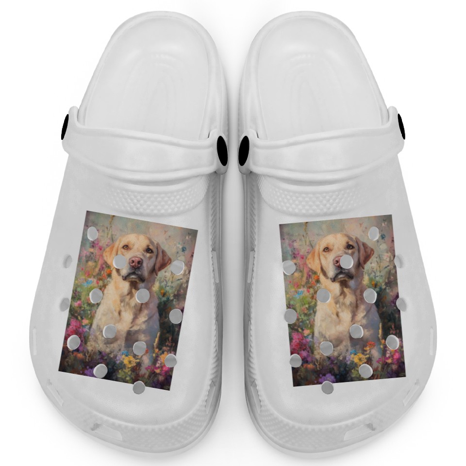 Shop for attractive Labrador in Vibrant Garden Scene Clogs or see more Clogs products on https://printblur.com right now!